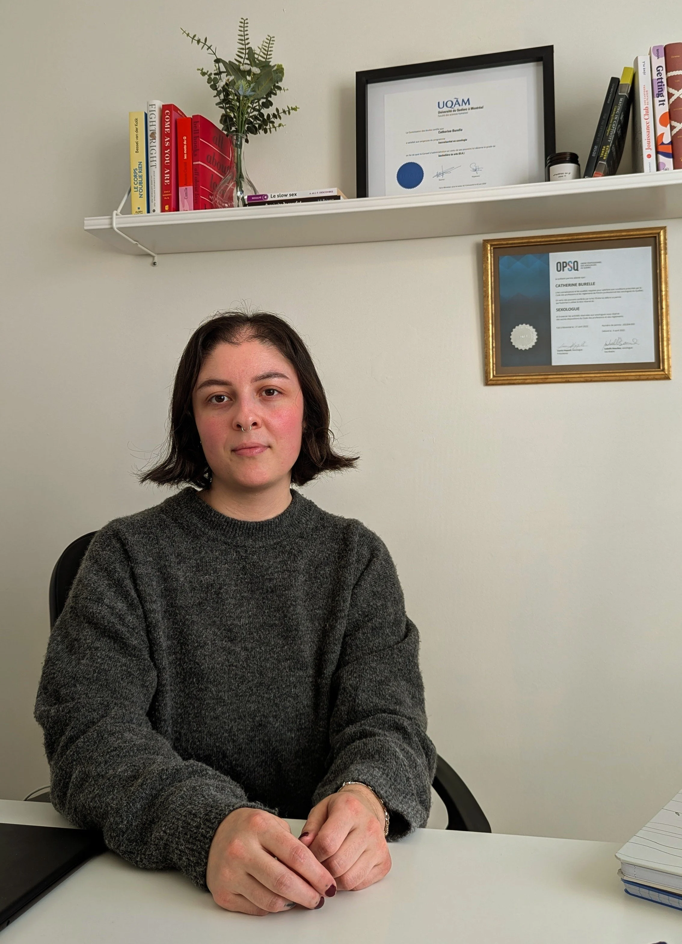 Je suis sexologue, formée de l’Université du Québec à Montréal, et membre de l’Ordre professionnel des sexologues du Québec (OPSQ)